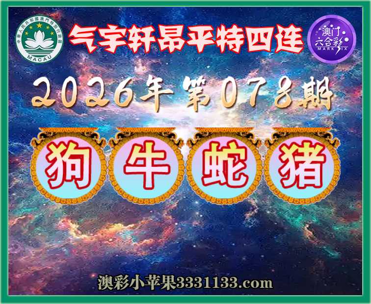 078期:〖气宇轩昂〗 平特四连【狗牛蛇猪】开:狗33,牛18,蛇02,猪08准上榜高手