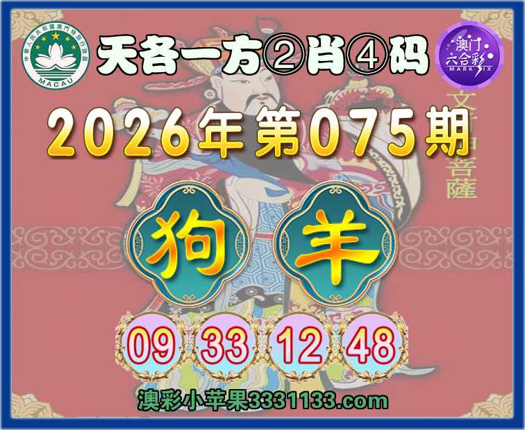 075期:『天各一方』 ②肖④码羊】【09.33.12.48】开:狗33